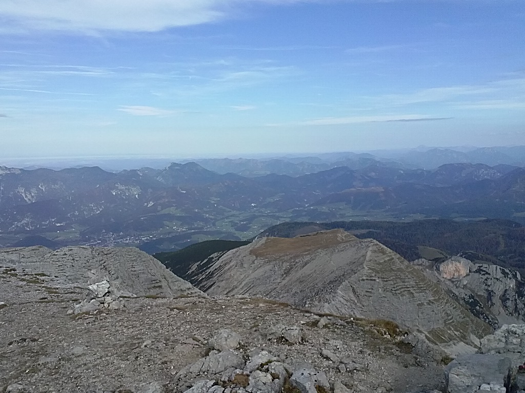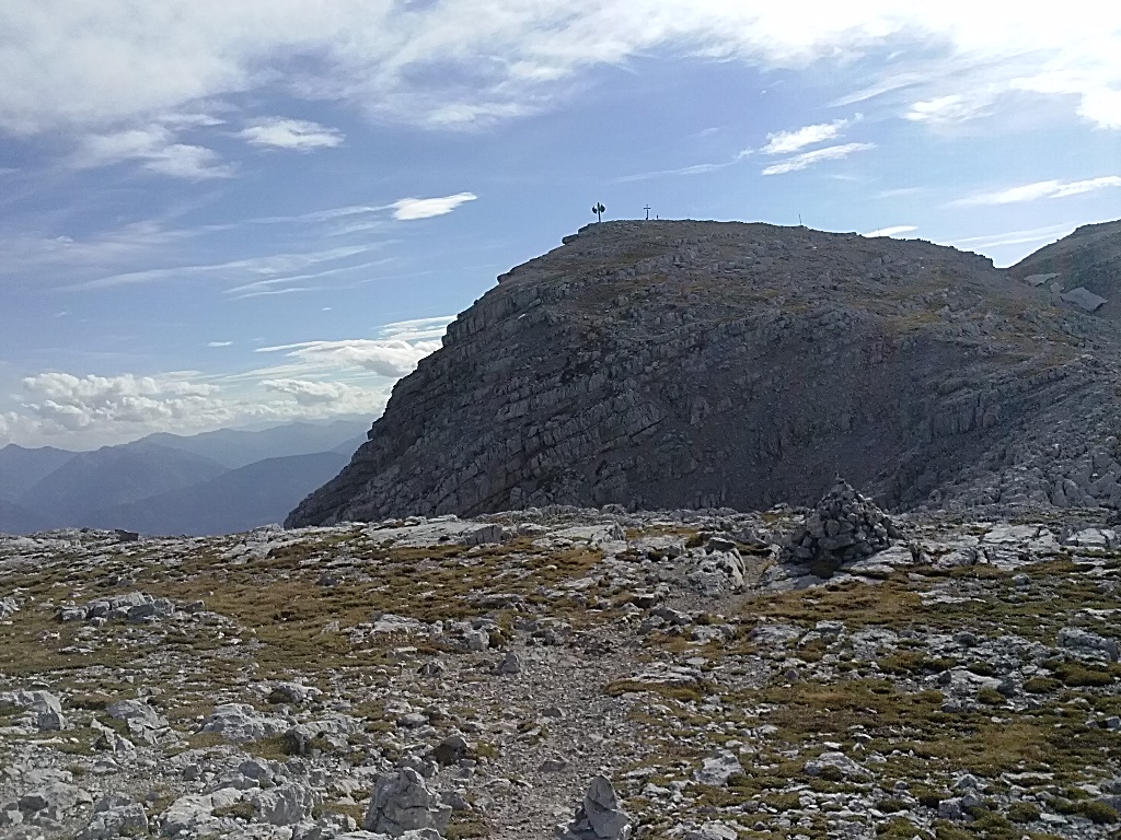 Jedoch das Durhalten lohnt sich. Irgendwann steht man auf einem steinigen Hochplateau und von da sind es dann nur mehr 30 Minuten auf den Gipfel und dieser ist dann auch schon in Sichtweite. Was für eine Freude und die Aussicht auf diesem Hochplateau ist bereits atemberaubend. Wir hatten Glück und wir hatten an diesem Tag einen prächtigen Bergwetter-Tag mit grandioser Fernsicht. Malerisch, ruhig, beeindruckend und doch ein bisschen windig kühl hat sich uns der Gipfel präsentiert. Insgesamt sind wir ca 3,0 Stunden von der Zellerhütte weg marschiert. Nach einer kurzen Rast am Gipfel wanderten wir dann wieder bergab – am selben Weg.