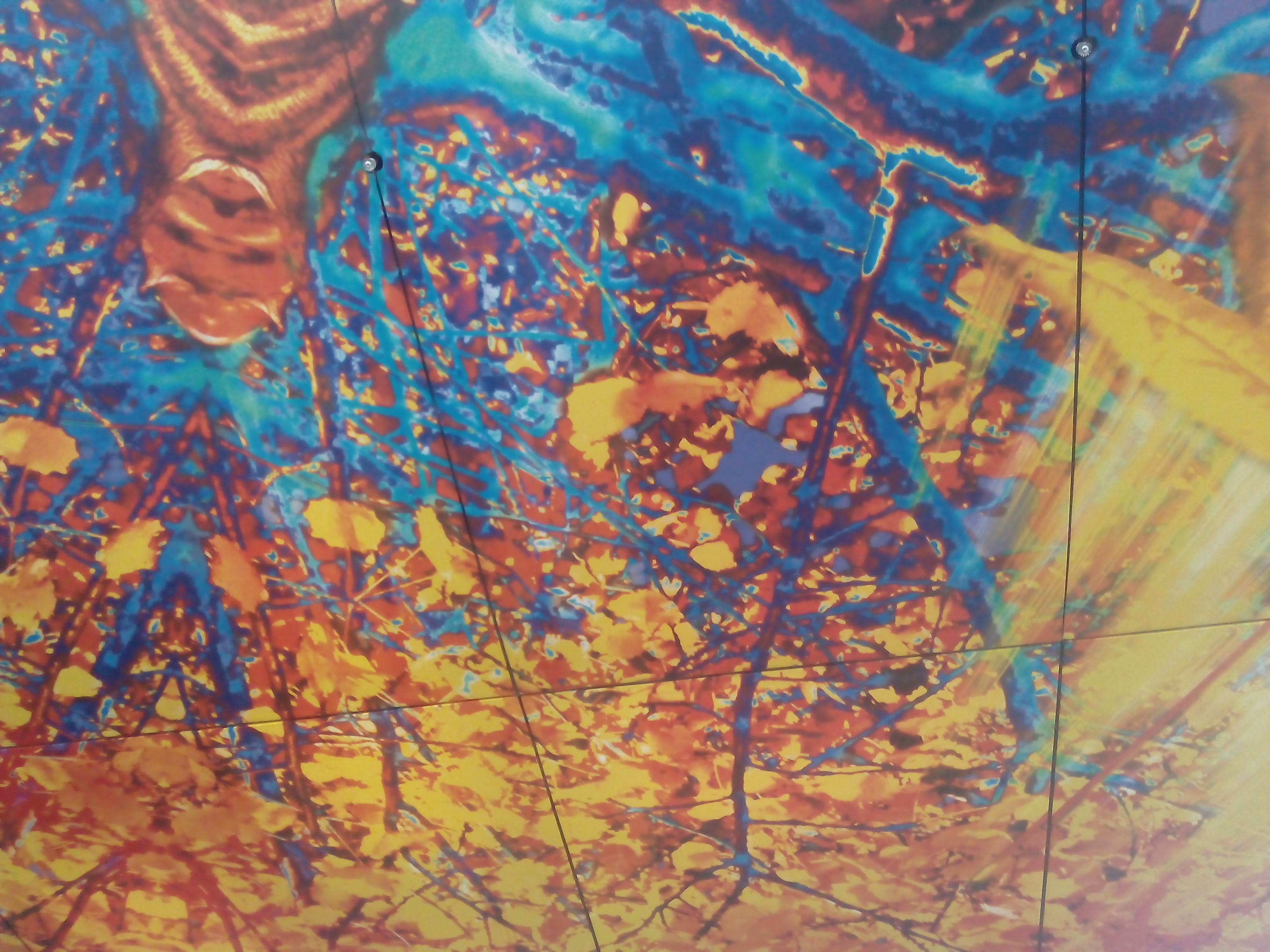 Das Restaurant stilistisch in Grau-Tönen gehalten. Dafür die Decke in bunten Farben. Bitte fragt mich nicht – ev. hat die Decke ein berühmter Maler gemalt, was ich aber eher nicht annehme. Fakt ist die kühlen, grau und schwarz Töne, mit dem Glas und der farbigen Decke wirken sehr elegant und harmonisch.