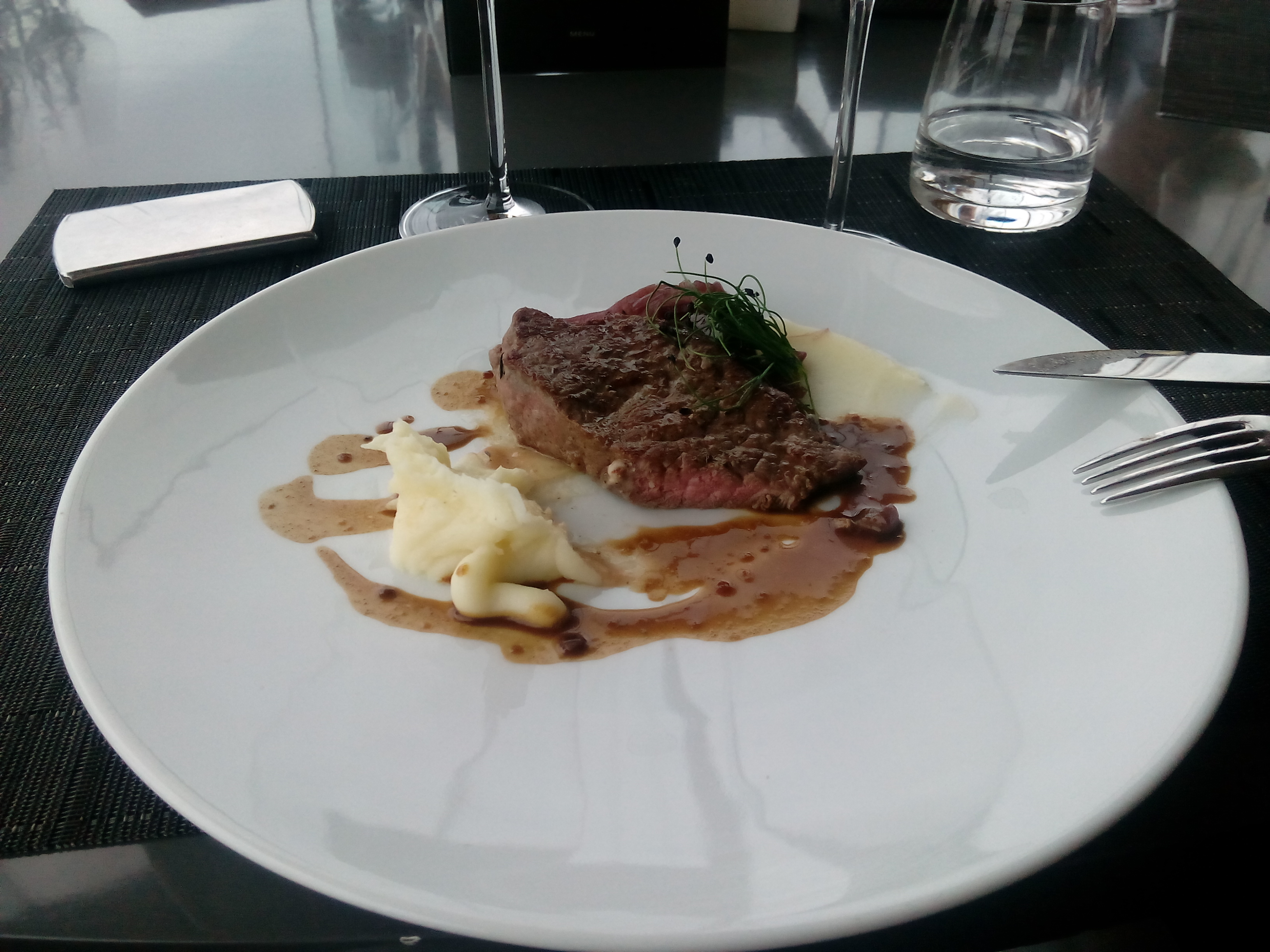 Als Hauptgang gabs Steak auf Püree mit …hm…das Grüne kann ich mich nicht mehr erinnern…aber vielleicht wisst ihr es?