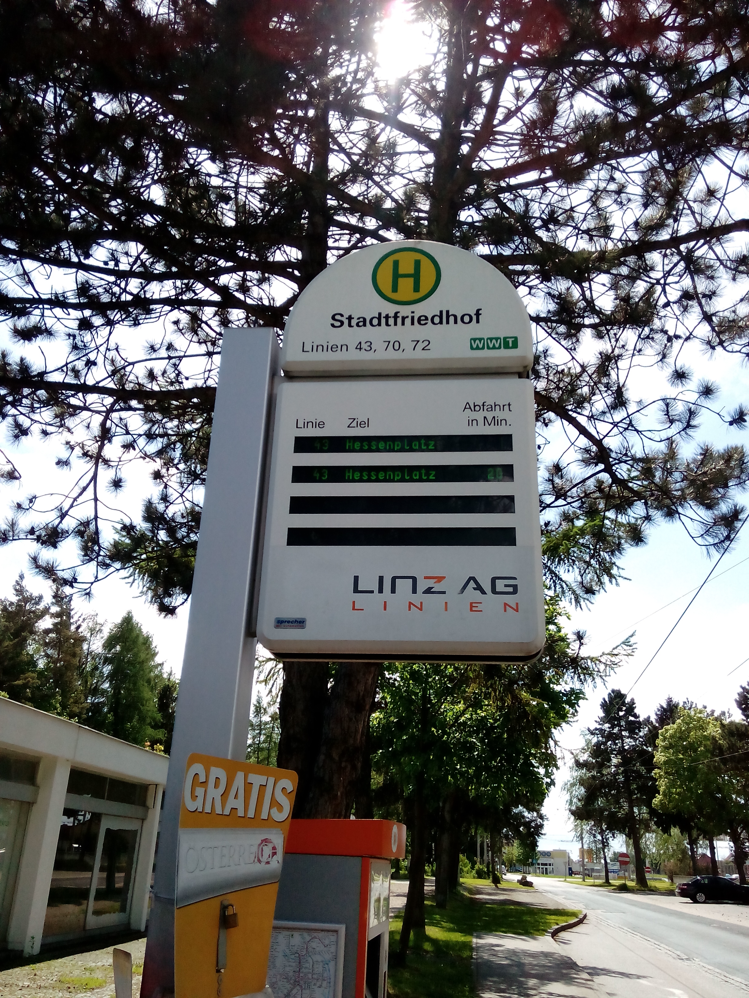 Ich habe es wieder getan. Heute am Muttertag ging es in charmanter Begleitung meiner Mama vom Hessenplatz zum Stadtfriedhof. Der Hessenplatz im Herzen von Linz mit einem kleinen Park und daneben die Wirtschaftskammer. Der Hessenplatz ist für die Obuslinien 41 und 43 die Endstation. Ich persönlich finde jetzt den Hessenplatz nicht so ganz gemütlich vorallem am Abend ist die Busstation nicht gerade in einer traumhaften Gegend, wo man gerne steht. Am Hessenplatz führt die Dametz- bzw Humboldstraße vorbei die eine der stark befahrensten Straßen durch Linz darstellt.