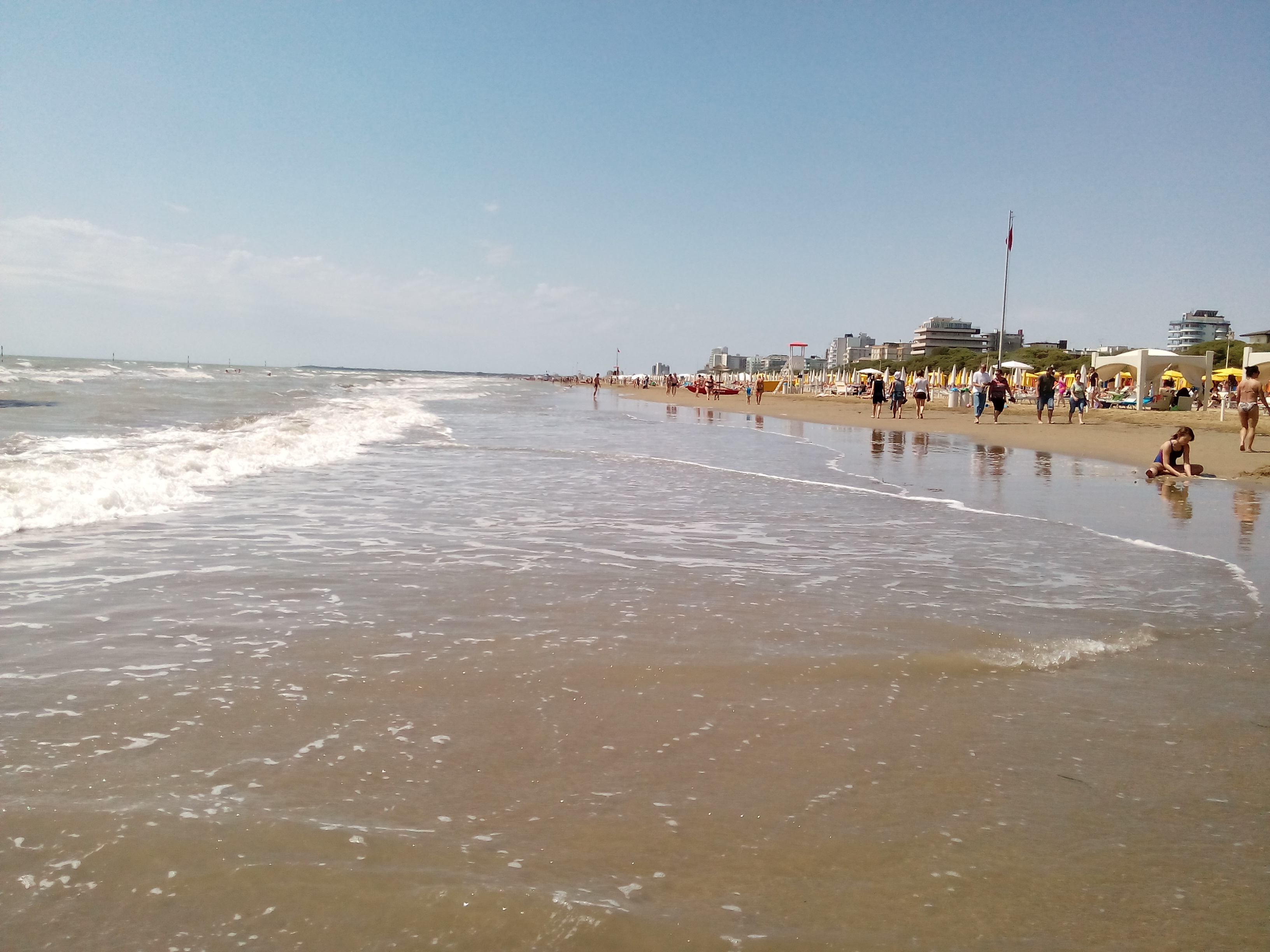 Spätestens dann bei der Autobahnabfahrt Richtung Jesolo hat es dann schon nach Meer gerochen. Da habe ich damals aus Papas roten Mazda 626 mit den ersten elektrischen Fensteröffnern den Kopf durch das Fenster gesteckt und die Meerluft tief eingeatmet. Meistens sind wir dann total übernachtig am Vormittag in Jesolo eingetroffen – in unseren Hotelbunker in der ersten Strandreihe mit einem Sonnenschirm und 2 Liegen für die Erwachsenen am kilometerlangen Sandstrand wo jeder Sonnenschirm fast gleich aussieht.