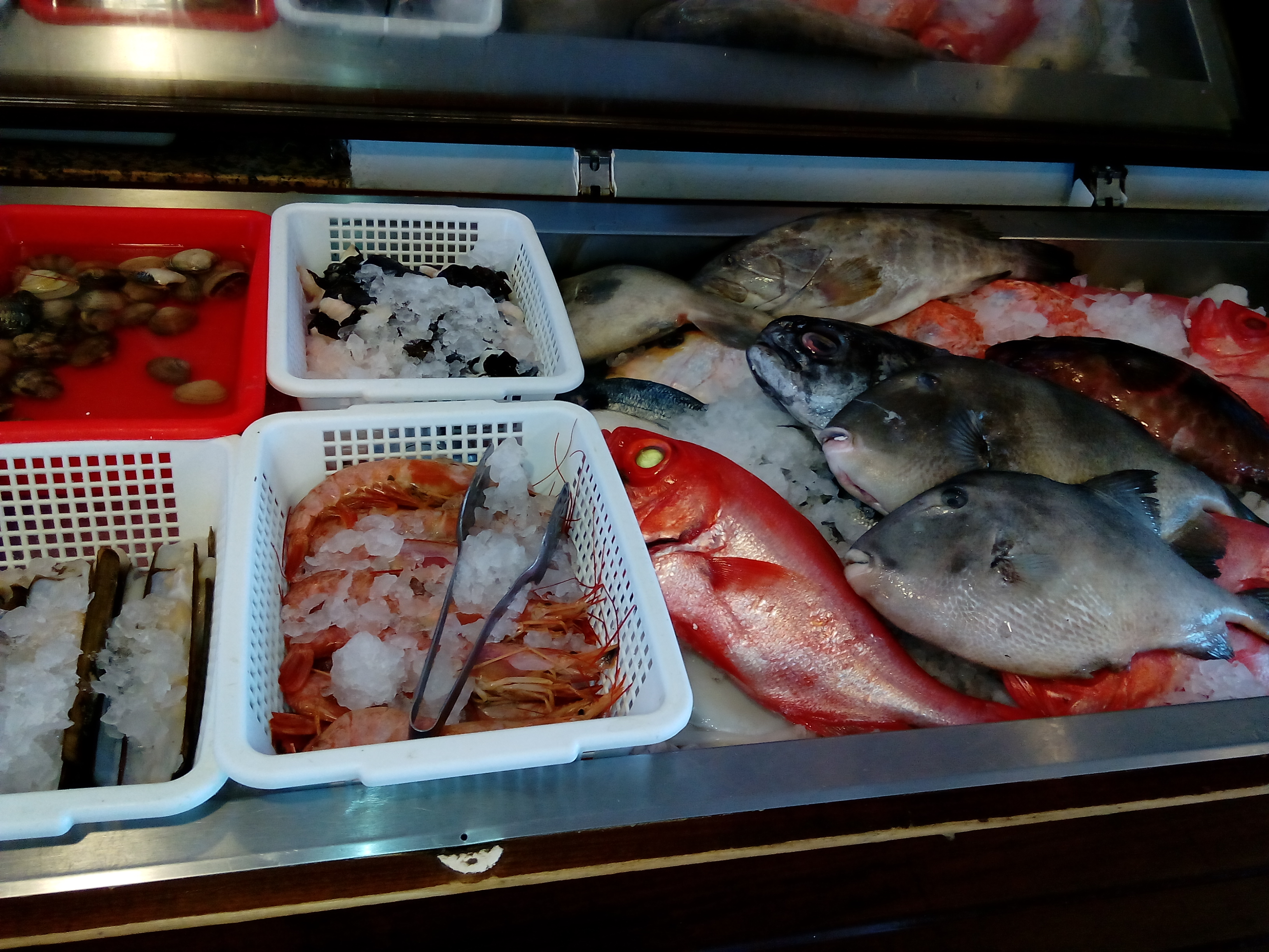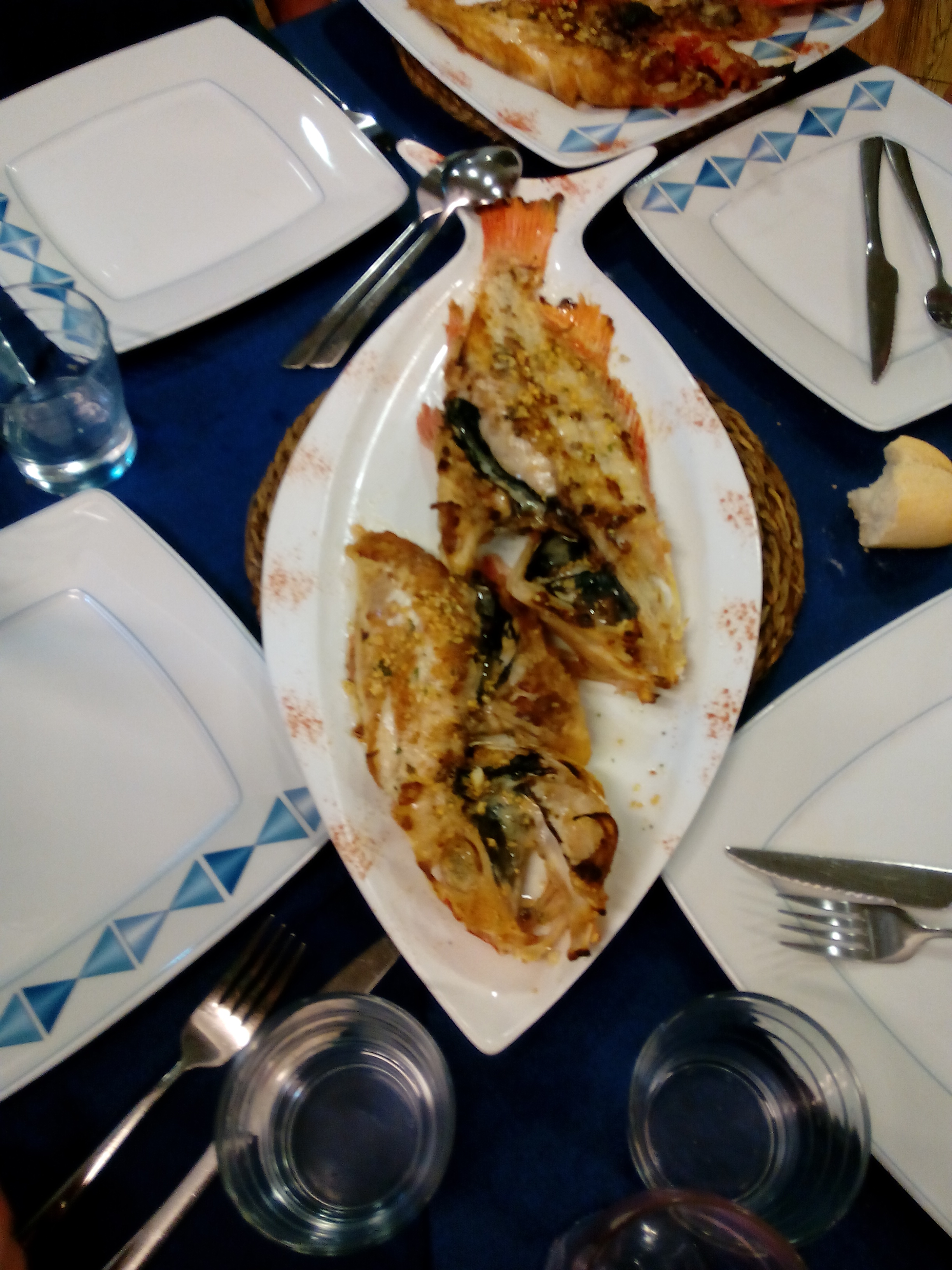 Tja und dann sucht man sich den Fisch aus den man möchte. Diese werden dann mit Olivenöl und Knoblauch bzw wenn man möchte mit Soße serviert. Dazu je nach Beilagen welche man möchte – Kartoffeln – Piementos (kleine Paprika in Salz) kann ich echt empfehlen.