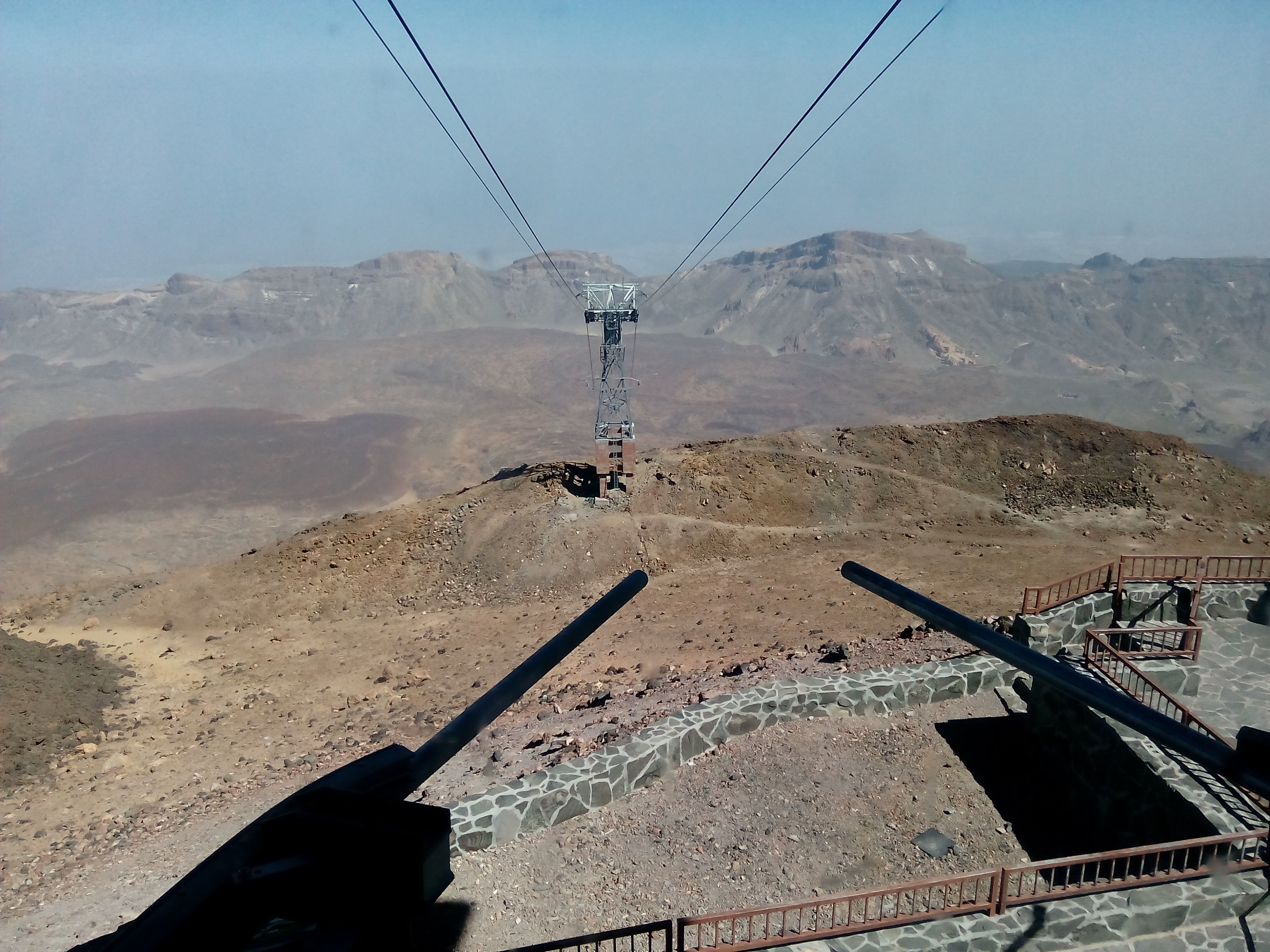 Nachdem wir wieder beim Auto beim Nationalpark-Gebäude angekommen sind, haben wir uns dann noch kurzfristig entschieden doch noch auf den Teide hoch zufahren. Auf den Teide führt eine Seilbahn hoch. Die Erwartungen waren hoch. Nochmals 1000hm höher zu stehen und die Aussicht zu genießen, aber wir hätten es besser wissen sollen. Im Grunde weiß ich das schon bei den Alpen, da wo eine Bahn hoch geht sind massenweise Touristen aber die Aussicht muss dann auch nicht unbedingt schöner sein als die ohne Seilbahn. Als mein Blick bei der Seilbahn-Anlage dann auf den Namen Doppelmayr-Lifte fiel wußte ich, es war eine gute Entscheidung mit der Seilbahn doch noch hochzufahren. Schön, wenn man ein bisschen Heimat dann am Berg findet. Oben angekommen muss ich ehrlich sagen war ich ziemlich enttäuscht. Die Aussicht war nicht besser als vom Guajara. Es war nur kälter (25Grad Talstation | 8 Grad Bergstation) und windiger und wie schon angekündigt massenweise Menschen. Was allerdings wieder lustig oder auch traurig zu beobachten war. Viele froren oben bzw haben Kraxelmeisterleistungen mit ihren Flip –Flops über das Lavagestein gemacht. Mein Mitleid hielt sich in Grenzen, da die Menschen hingewiesen werden, dass es kalt oben ist und ein Berg bei fast 4000hm ist und es scheinbar trotzdem nicht fruchtet. Schlimm finde ich allerdings wenn es um die Kindern geht, weil die können nichts dafür, dass sich die Eltern zu wenig informiert haben und sie somit ebenso mit dünnen Hemdchen und Flip Flops dann oben frieren müssen, nach Luft jappsen bzw sich alle Zehen brechen mit dem Strandschuhen.