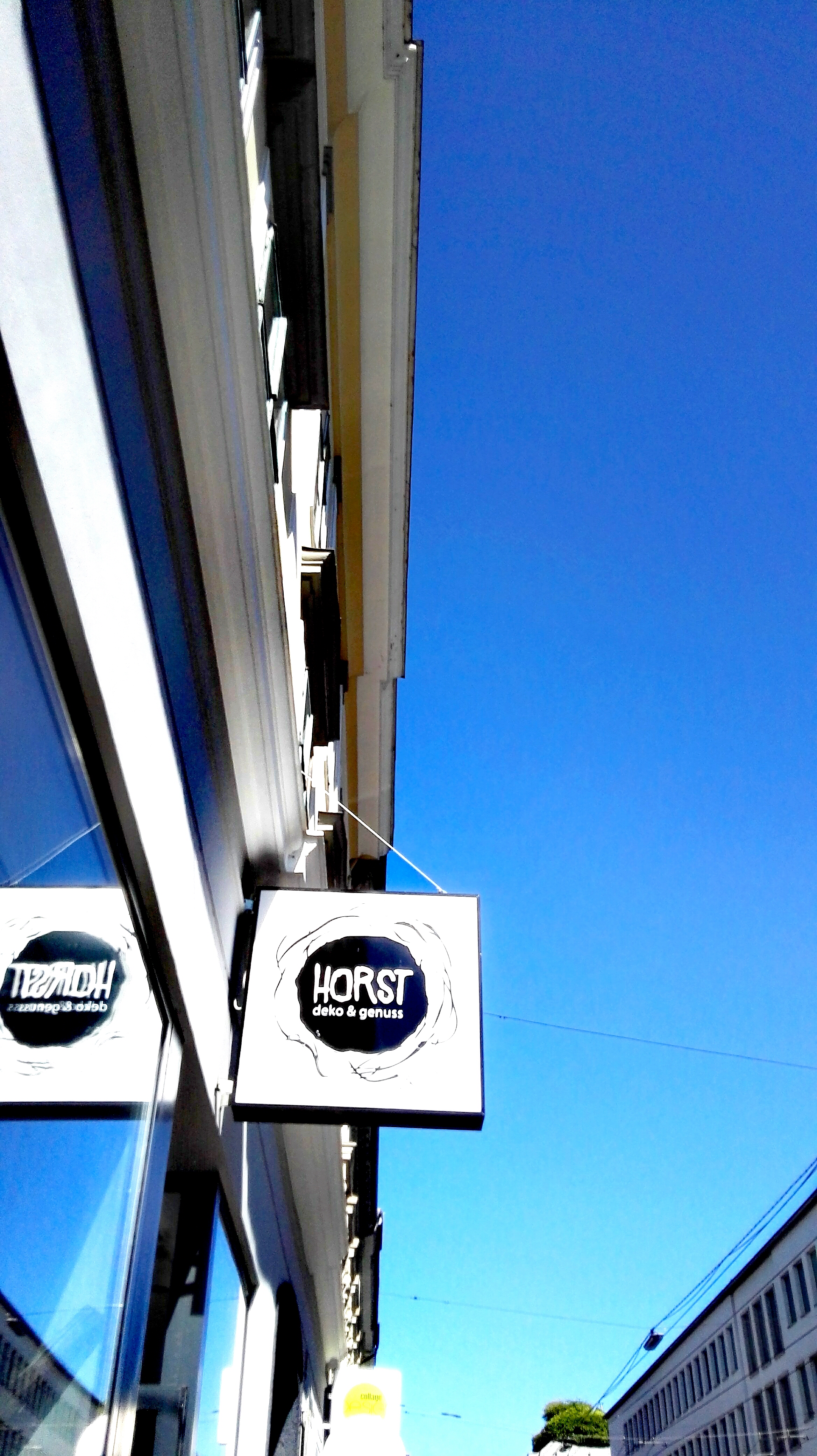Ich hatte keinen blassen Schimmer was mich erwartete, wenn ich den HORST besuchen gehe. Letzten Freitag dann war es so weit, ich und der HORST hatten Zeit. Voller Elan schritt ich von der Mozartkreuzung die Straße Richtung Wirtschaftskammer runter und da plötzlich sozusagen vis a vis von der Wirtschaftskammer ein dezentes Schild in Schwarz gehalten: HORST.