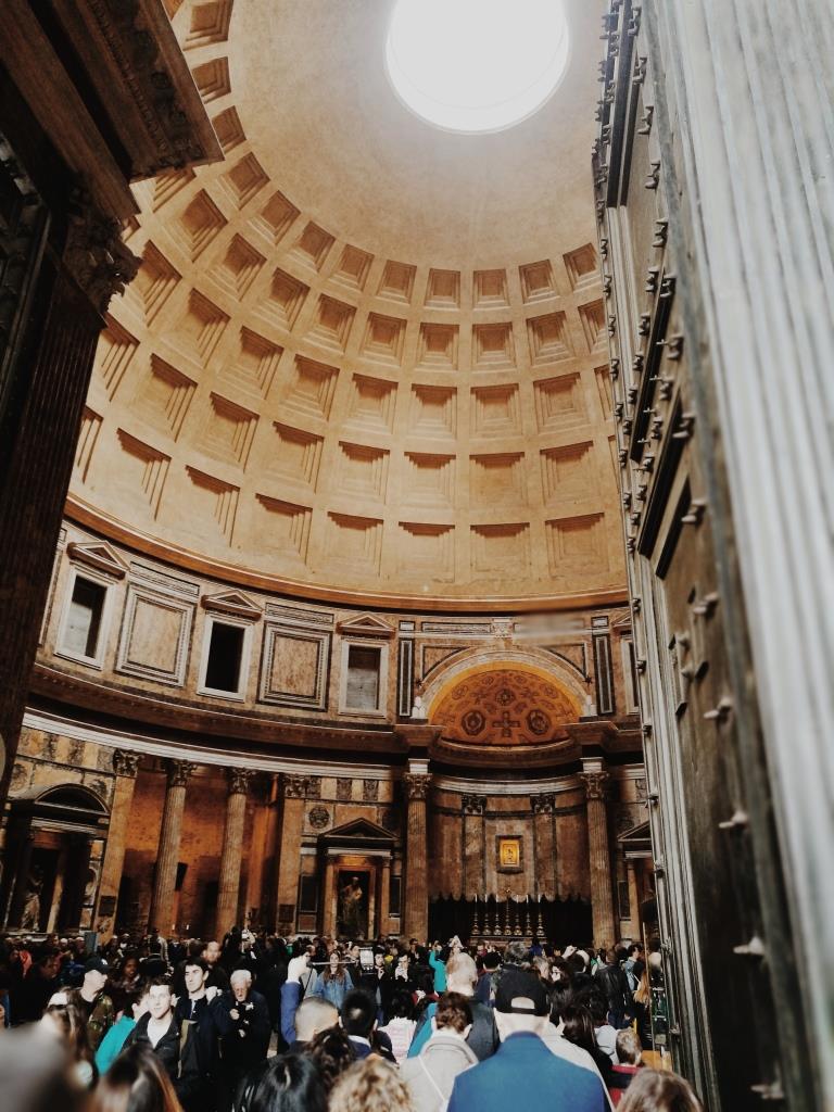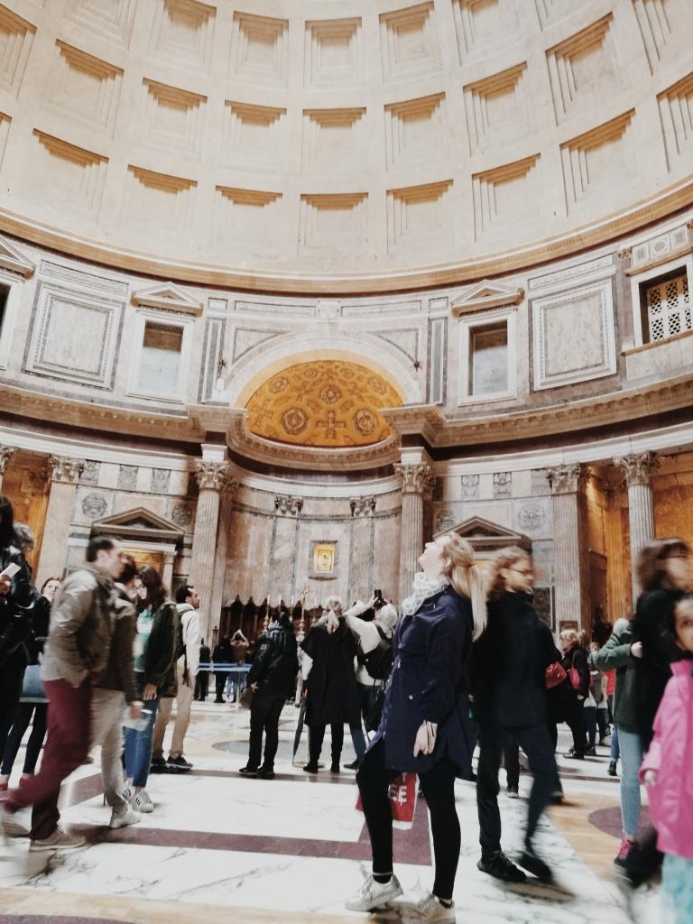 Das Pantheon steht ebenso schon seit mehr als Tausend Jahren und ist eine Kirche. Oben in der Kuppel ist ein Loch und mir wurde gesagt, dass erst kürzlich von oben Rosenblüten runtergestreut wurden. Stell ich mir schön vor, wenn man unten steht.