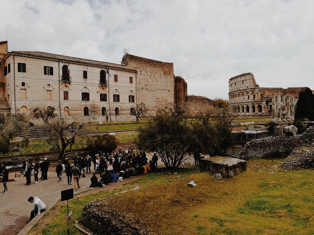 Wir sind von der Unterkunft mit dem Bus und der Metro zum Kolosseum gefahren. Das Kolosseum, generell der Ort, hat was magisches finde ich. Ich könnte hier Stunden verweilen und nur das Leben rund um das Kolosseum beobachten. Es ist immer wieder für mich beeindruckend, dass dieses Gebäude ca 80. nach Christus gebaut wurde und noch immer steht. Mehr als Tausend Jahre steht dieses Gebäude also schon, unglaublich oder? Es ist so beeindruckend, wie sie damals so ein Gebäude überhaupt bauen konnten und dann auch noch so nachhaltig, dass auch ich heute noch die Mauern bewundern kann. Wenn ich dann da so am Platz bin, stelle ich mir vor, was diese alten Mauern des Kolosseums wohl zu erzählen hätten. Wahrscheinlich würden sie unter anderem den Kopf schütteln über die Dummheit von uns Menschen oder über unsere Probleme die wir uns selbst schaffen. Hm. Ich weiß es nicht.