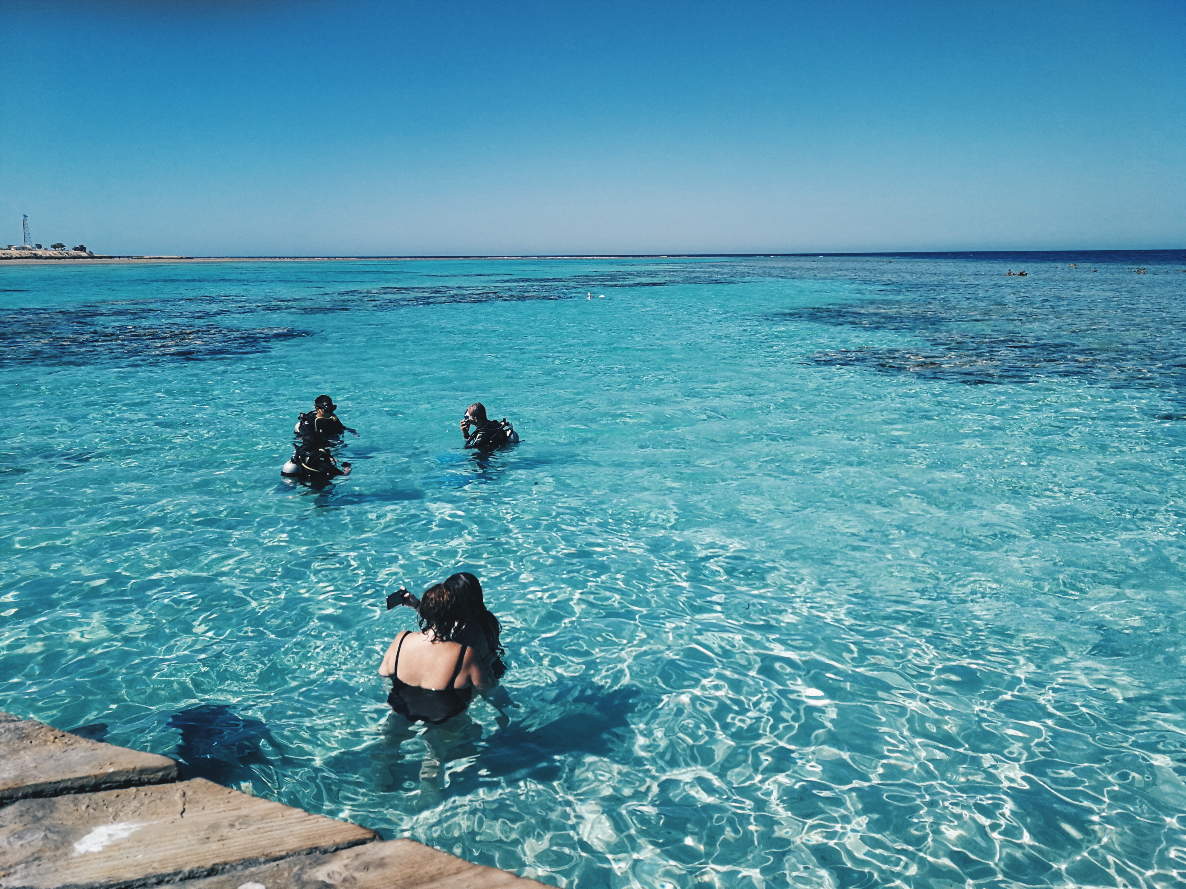 • Ich habe rund um die Korallenriffe geschnorchelt und Open-Water im Roten Meer erkundet.
