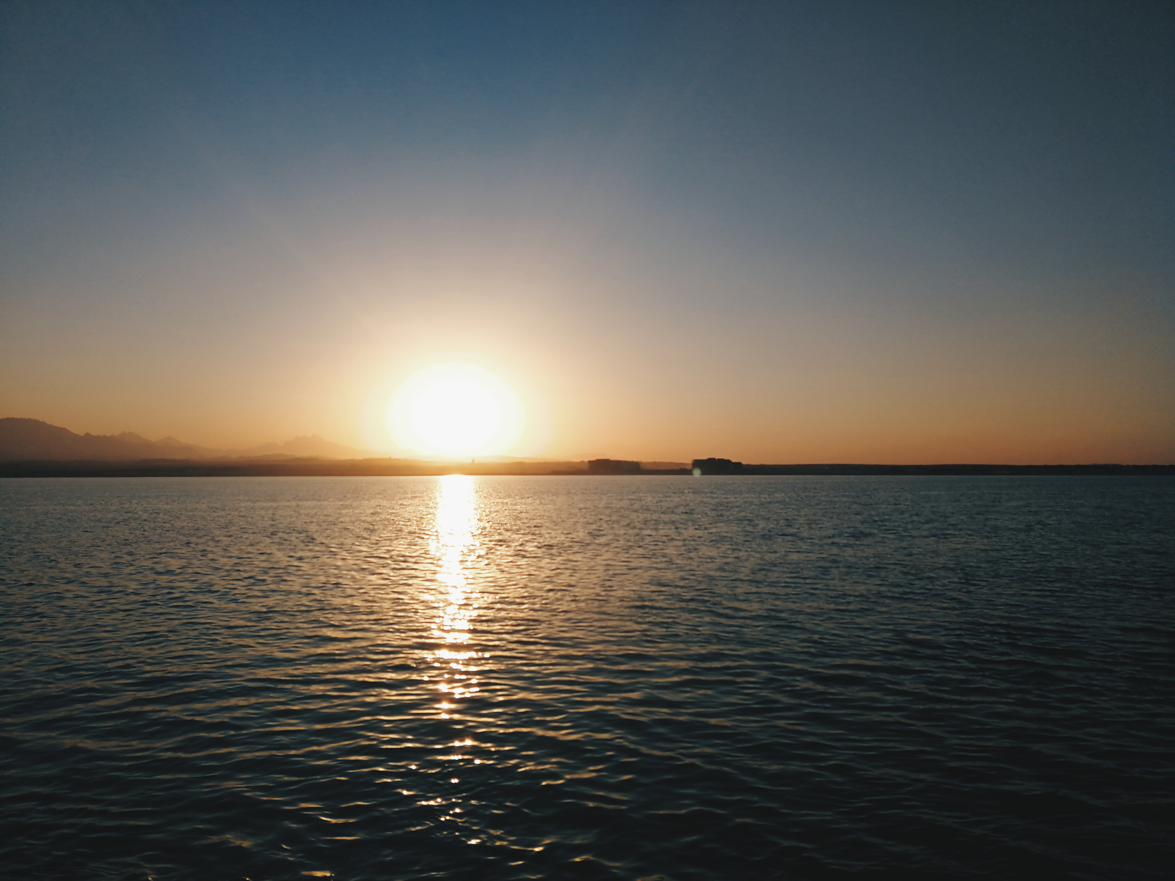 • An Bord eines Schiffes habe ich die untergehende Sonne über dem Roten Meer bewundert.