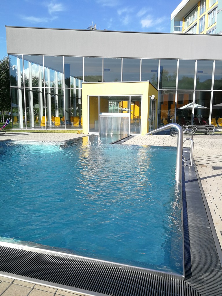Die kurze Zeit die ich in Bad Zell war, haben mir sehr gut getan und meine Energiereserven mindestens um das Doppelte wieder aufgeladen. Es tat so unfassbar gut im warmen Wasser schwimmen, die Massagedüsen auf dem Körper spüren und der Wettergott meinte es auch gut mit uns und schickte uns tiefblauen Himmel mit Sonnenschein. So war Sonne tanken draußen auf der Liege auch möglich – ach es tat so gut.