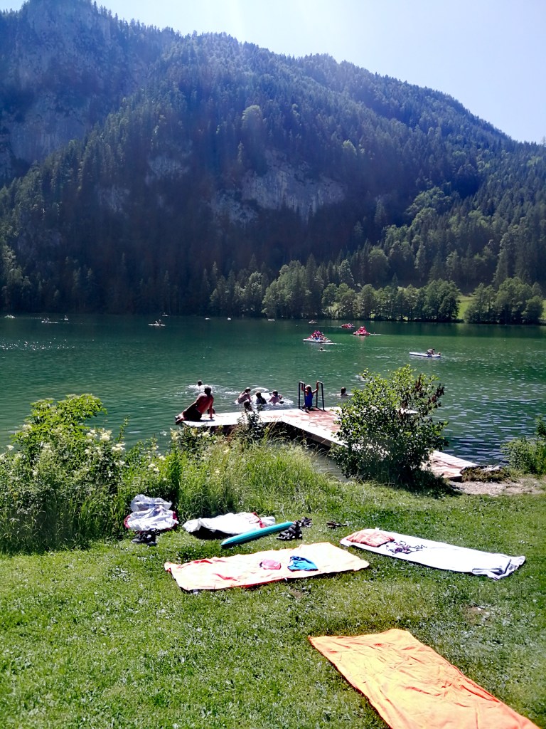 Der Tag war heiß und so haben wir beschlossen etwas baden zu gehen und da wir bereits in Hinterstoder waren, sind wir über Vorderstoder weiter nach Rossleiten zum Gleinkersee gefahren. Auch hier war ich schon sehr oft. Der Gleinkersee ist ein beliebter Bergsee zum Baden und ist auch Ausgangspunkt der Wanderung zur Dümmlerhütte. Um ehrlich zu sein, mir war es zu voll. Gerade im Sommer ist der Gleinkersee von einem idylischen Bergsee weit entfernt. Parkplatzmangel, eine Liegewiese wo man fast übereinander liegt obwohl man dafür zahlt, ein Fun-Kletterwald gleich nebenan. Wer das Gewusel im Sommer mag ist hier sicherlich gut aufgehoben.