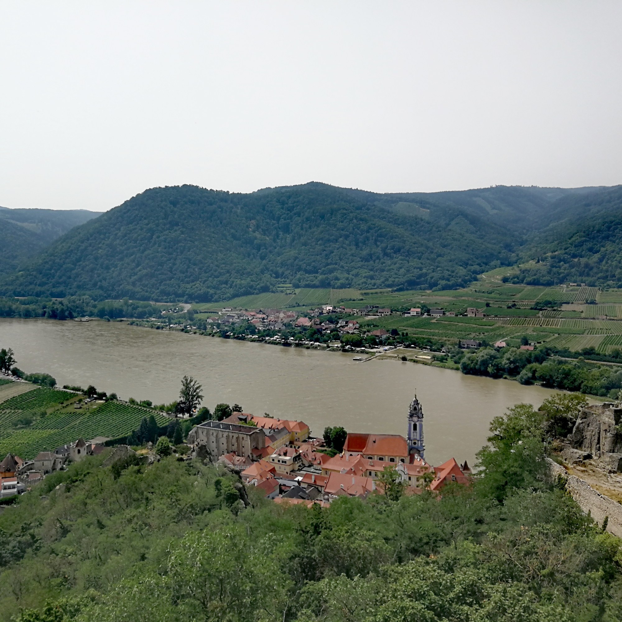 Mitten in der Wachau, umgeben von Weinhügeln, liegt die Burgruine Dürnstein. Alle die schon mal den Namen Richard Löwenherz gehört haben oder auch die Robin Hood Geschichten kennen, könnte Dürnstein ein Begriff sein. Wir sind die Ruine hochgegangen und habe den wunderschönen Blick auf die Donau genossen. Hochgehen tut man so eine halbe Stunde, wenn überhaupt … ist ganz einfach zum Hochgehen. Viele die mit dem Rad am Donauradweg unterwegs sind, nutzen die Gelegenheit und gehen hoch, darum sieht man einige die mit Fahrrad-Klamotten oben herumlaufen.